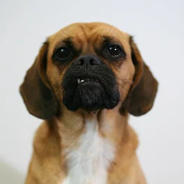 Christopher’s adorable “puggle” i.e. the divine mix of a pug and a beagle. Zoey is livin’ the good life, being totally spoiled every day at the office. She loves to play hide and seek with bones and her favorite song is The power of love with Frankie goes to Hollywood (true story).